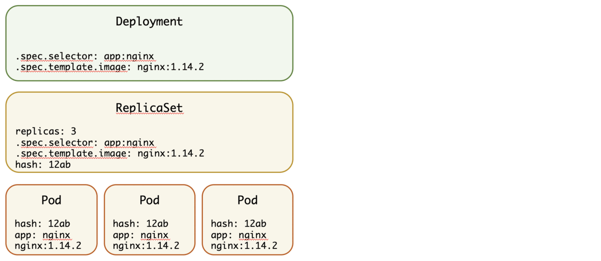 이 레이블은 디플로이먼트의 자식 레플리카셋이 오버랩되지 않음을 보장한다. 레플리카셋의 PodTemplate을 해싱하고 해시 결과를 레플리카셋 셀렉터, 파드 템플릿, 및 레플리카셋이 가질 수 있는 기존의 모든 파드에 레이블 값으로 추가해서 사용하도록 생성한다.