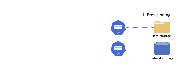 먼저 쿠버네티스 클러스터 관리자가 직접 PV를 생성한다. 로컬 스토리지나 NFS와 같은 네트워크 스토리지를 생성할 수 있다. 그리고 클러스터 사용자가 사용할 실제 스토리지의 세부사항을 PVC를 통해 생성한다.