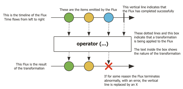 Flux 는 [0,N] 개의 항목에 대한 비동기 시퀀스를 나타내는 Publisher이다.