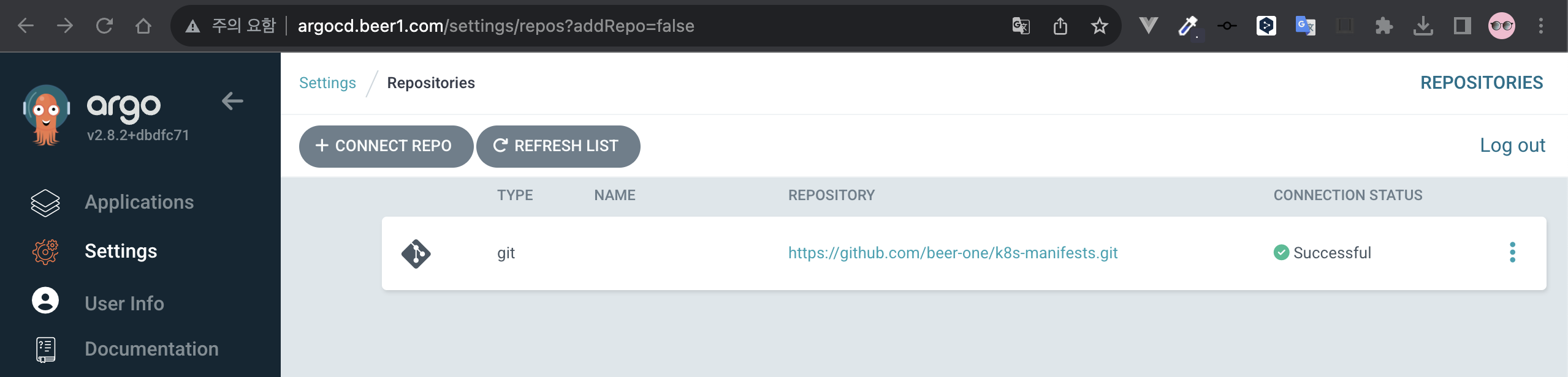 - 예시는 해당 레포지토리이다. https://github.com/beer-one/k8s-manifests