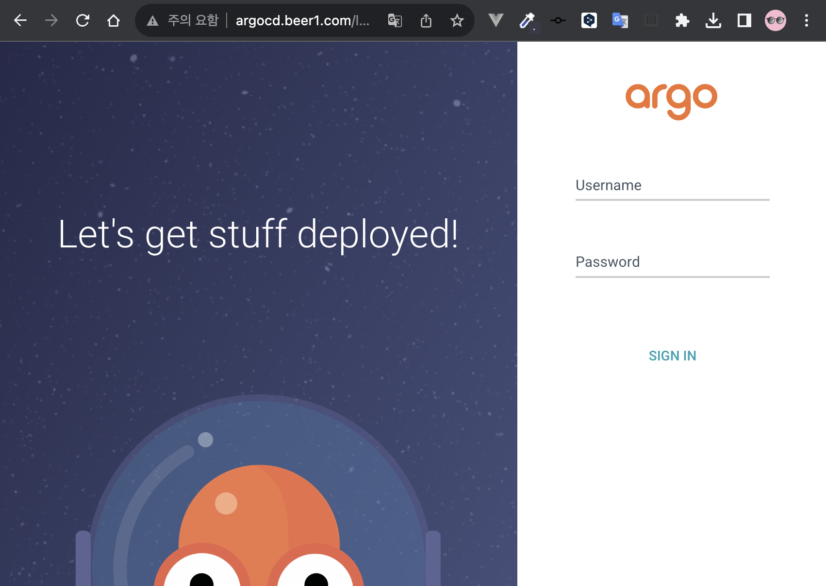 만약 helm으로 배포했을 경우에는 http 접속을 기본적으로 허용하지 않기 때문에 values.yaml 파일에 configs.params.server.insecure 설정을 해야 한다.