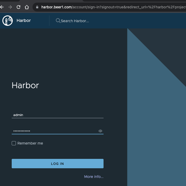 이제 admin 계정으로 하버에 로그인을 해보자!