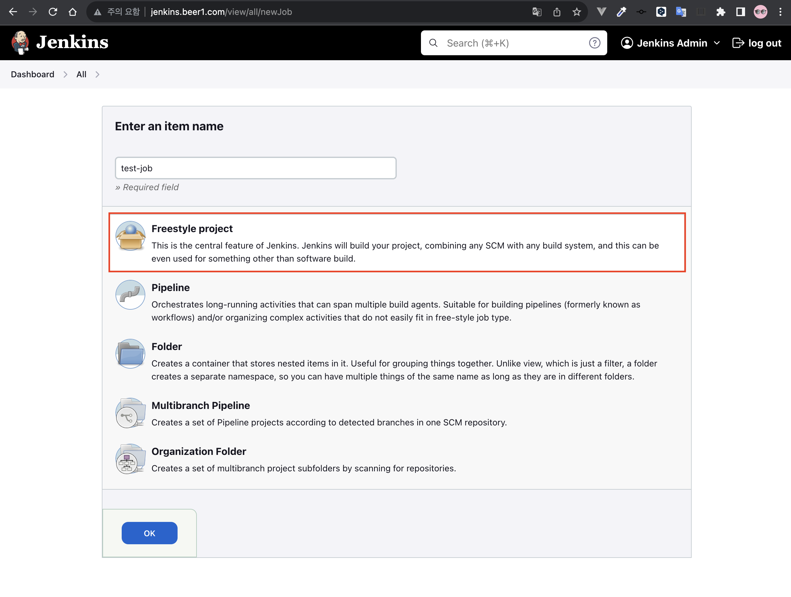 - Freestyle project를 선택하자.