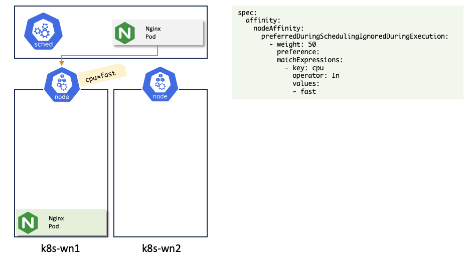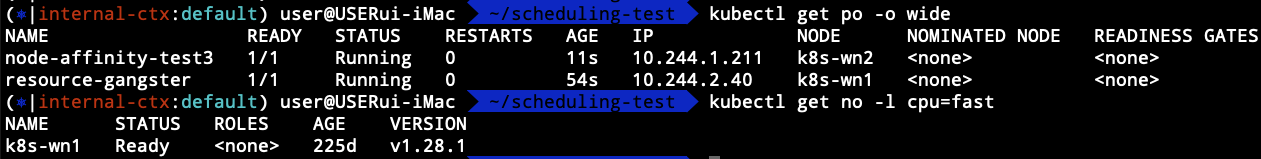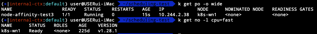 $ kubectl labels no k8s-wn1 cpu=fast