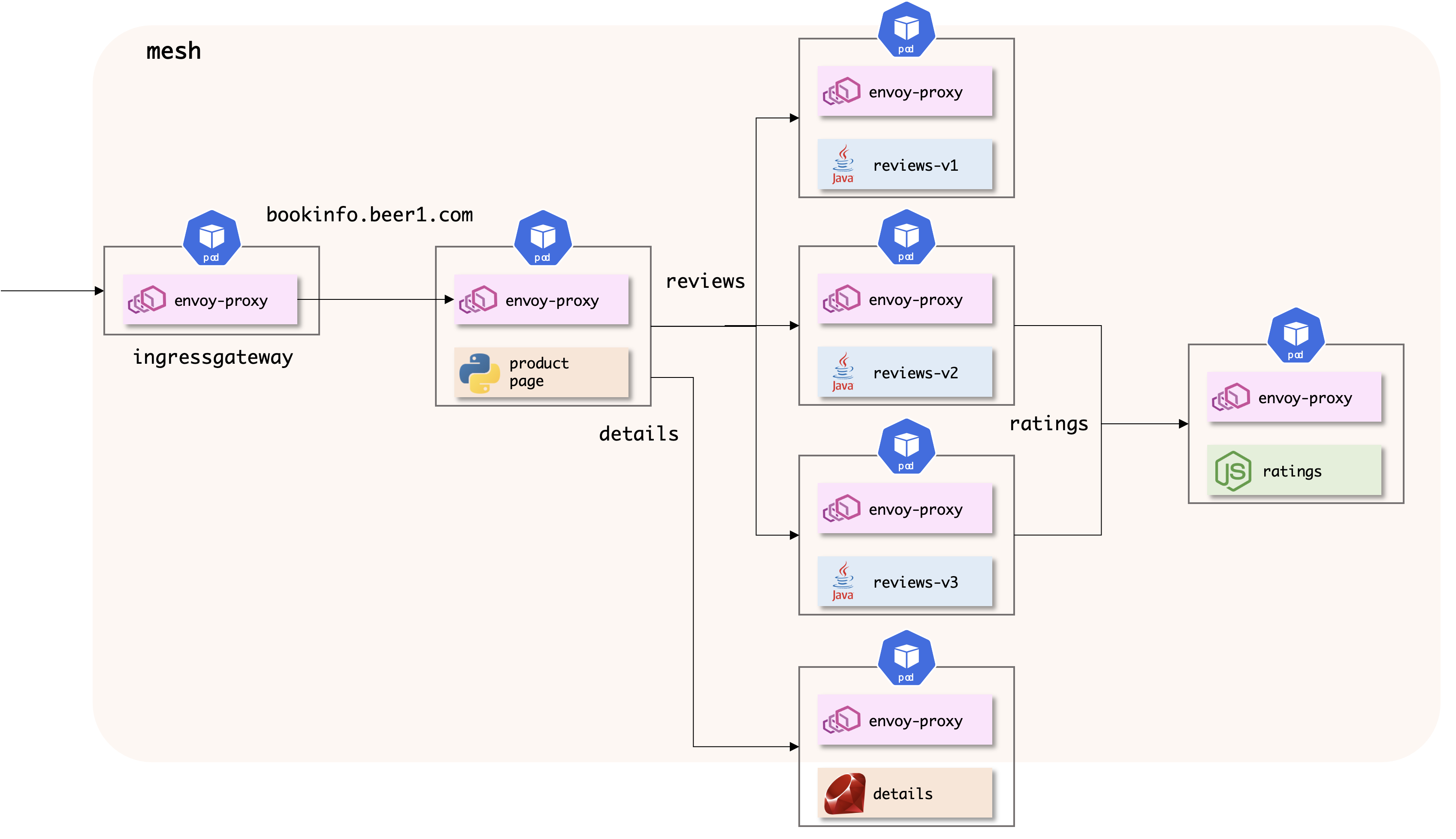 모두 적용 후 bookinfo.beer1.com으로 접속해보면 화면이 잘 뜨는 것을 확인할 수 있다.