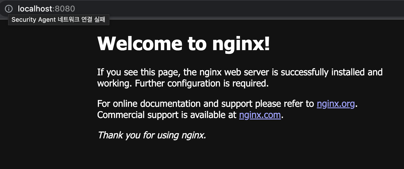 그리고 다른 터미널이나 웹 브라우저를 사용하여 localhost:8080 으로 접속해보자. 통신이 가능할 것이다.